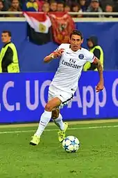 On 14 February 2017, Di María scored a brace as PSG defeated Barcelona 4–0 in the first leg of 2016–17 UEFA Champions League round of 16 at the Parc des Princes.[84] On 1 April, he scored in PSG's 4–1 win over Monaco in the 2017 Coupe de la Ligue Final.[85] On 8 May 2018, he played as PSG won 2–0 against Les Herbiers to clinch the 2017–18 Coupe de France.[86]