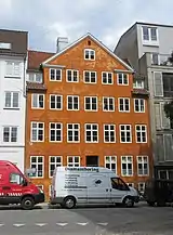 Several of the other buildings in the street also date from the 18th century and are examples of the so-called "fire houses" that were built immediately after the Fire of 1728. No. 25 was originally built for court sculptor Friderich Ehbisch in 1733. Its facade was originally decorated with reliefs on all floors as well as on the dormer but they were removed when the building was converted into a warehouse in 1895-96.[4] The neighbouring building at No. 27 was built for Trabant Elias Dordé. The painter Wilhelm Bendz lived in the building in the late 1820s and early 1830s.[5] No. 23 (Åbenrå 23 / Hauser Plads 24) is also from the 1730s and listed.