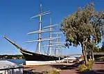 It is the centrepiece of the museum since 1957 at its present mooring in the western harbour of Mariehamn, after sailing for over 70 years.[3][5][15] Cabinets in the museum display curios collected by the sailors from different lands; including piranhas and sharks’ jaws, shells and corals. A unique display is a pirate's flag which is one of a kind.[8]