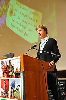 He served as deputy leader of the Workers' Youth League from 2010 to 2014.[5] He originally ran for the leadership, but narrowly lost the vote to Eskil Pedersen in a closely contested race,[6] although the election committee overwhelmingly favored him.[7] On 25 April 2011, he was elected vice president of the International Union of Socialist Youth.[8] He was appointed as political advisor to the Minister of Culture Anniken Huitfeldt in November 2011.[9]