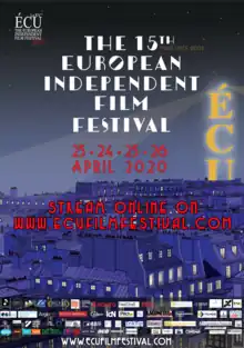 The 15th ÉCU - The European Independent Film Festival took place from 23 to 26 April 2020. Due to COVID-19 pandemic the festival took place online, with the films being screened on the festival's website, followed by the recorded Q&A sessions with the directors.