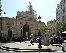 After the Revolution of 1789, the royal engineering schools were closed.[14] Jacques-Élie Lamblardie, Gaspard Monge and Lazare Carnot, the founding fathers of the School, were charged with organizing a new "École centrale des travaux publics"(Central School of Public Works)[14] which was officially created on 7 Vendémiaire, Year III (September 28, 1794) and opened to students on 1 Nivôse, Year III (December 21, 1794).[15],[16] The aim of the school was to train civil and military engineers. The school quickly welcomed 400 students of different levels. During the first three months, "revolutionary courses" were given in physics, mathematics and chemistry, after which they took exams to see if they could enter the civil service directly, or if they should continue their studies.[17] The school was renamed "École polytechnique" a year later. The neologism "polytechnique" is composed of "poly" which means "many" and reflects the plurality of techniques taught in the School. The change of name reflects the change of vocation of the school, which now prepares students for other specialized schools such as the École du génie, the École des mines and the École des ponts et chaussées. The curriculum lasted 3 years, the "regular courses" replaced the "revolutionary courses" and there were only 120 new students each year. The school was placed under the supervision of the Ministries of War and the Interior.[18],[14] A Journal Polytechnique (former name of "Journal de l'École polytechnique" ) was created in 1795.[14][19] In 1799, the course was reduced from three to two years.