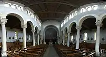 Église Notre Dame is a Roman Catholic church in the town of Clisson, France. It was founded by Olivier V de Clisson in the 14th–15th century. The church was razed during the War in the Vendée, and later renovated under the Empire in the early 19th century. It was completely demolished and rebuilt in 1885–88 by Nantais architect René Ménard, modelled after Roman basilicas. It is a listed monument since 2006.[1]