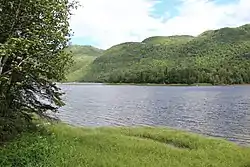 It continues: "The Éternité river is a small fish-filled stream that descends from the Laurentian mountains for almost 20 km, to discharge Lac Éternité, a narrow body of water, which forms an L stretched over 9 km long. Forest sites were exploited along this river, in the current municipality of Rivière-Éternité, at the end of the XIXe century[3] · .[4]"