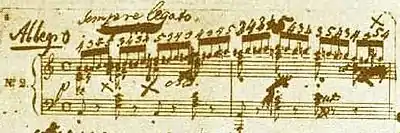 A copy by Józef Linowski of Chopin's autograph reads cut time (alla breve) for No. 2,[7] but this seems to have been overlooked. The original (first French, German, and English) editions have common time.[8] Chopin's metronome marking for the piece is