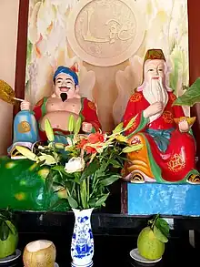 Ông Địa and Thần Tài are two of the most commonly worshiped gods in Vietnam. The shrines can also be found in other Southeast Asian countries such as Cambodia. They are worshiped widely in temples, đình, company offices, shops, restaurants and private houses.[5]