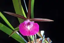 × Brassocattleya or Brasso-cattleya, abbreviated Bc. in the horticultural trade,[1] is an intergeneric orchid hybrid derived from the genera Brassavola and Cattleya.[2] Brassocattleya contains both hybrids that appear in nature (in Brazil, see the species list below), as well as hybrids from cultivation (which are referred to by their grex names).
