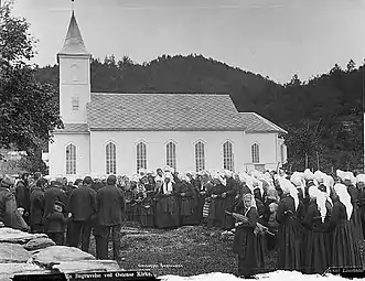 Øystese Church (Norwegian: Øystese kyrkje) is a parish church of the Church of Norway in Kvam Municipality in Vestland county, Norway. It is located in the village of Øystese. It is the church for the Øystese parish which is part of the Hardanger og Voss prosti (deanery) in the Diocese of Bjørgvin. The white, wooden church was built in a long church design in 1868 using plans drawn up by the architect C. Erichsen in consultation with Jacob Wilhelm Nordan. The church seats about 500 people.[1][2]