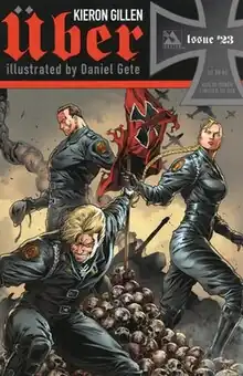 Über is a comic book series written by Kieron Gillen and illustrated by Caanan White, Gabriel Andrade and Daniel Gete. It was published monthly by Avatar Press, which released the first issue in April 2013. The comic depicts an alternate World War II in which the Third Reich develops powerful superhuman soldiers in 1945, preventing its imminent defeat and forcing the Allied nations to counter with superhumans of their own.