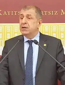 He was deputy leader of the far-right Nationalist Movement Party (MHP) from November 2015 to February 2016. He announced his candidacy for the party leadership for the 8th MHP Ordinary Congress in 2006, but had his membership revoked two days later. After returning to the party following a successful lawsuit, he again announced his candidacy for the MHP leadership in April 2016 for the 2016 Nationalist Movement Party Extraordinary Congress, which was eventually called off after numerous legal disputes. He had his party membership revoked by the MHP High Disciplinary Board on 15 November 2016 joined the Good Party. In April 2019, he resigned from party's executive board but announced that he will continue to be in the party and continue his party-related activities.[1] On 16 November 2020, Özdağ was also dismissed from the Good Party.[2] He founded the right wing anti-immigrant Victory Party on 26 August 2021 and was elected the first chairman.[3]
