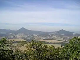 ![]() Milešovka (left) and Kletečná as seen from Lovoš | |