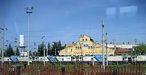 İskenderun station (Turkish: İskenderun istasyonu) is the main railway station in the city of İskenderun, Turkey. The station is located at 36°35′18″N 36°10′54″E. The bus station is to the south west and the harbor is to the north of the station. İskenderun is a port city in the Hatay Province and the station is the southern terminus of the Toprakkale-İskenderun branch line which connects the province to the main line between Adana and Gaziantep.[1] The line was opened to service in 1913 during the Ottoman Empire era.[2]