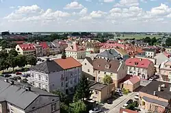 During the German invasion of Poland, which started World War II, the Germans executed 29 Poles, including two families on September 9–10, 1939.[4] Łęczyca was then occupied by Nazi Germany and incorporated into the region known as Reichsgau Wartheland[5] as part of the district (kreis) of Lentschütz (Germanized word for 'Łęczyca'). The Germans expelled 330 Poles from the town in December 1939.[6] Further expulsions of Poles were carried out in 1940.[7] Poles were deported to a transit camp in nearby Ozorków, and afterwards young people were deported from the camp to forced labour in Germany, and children and older people were deported to the General Government (German-occupied central Poland), while their homes, shops and workshops were handed over to German colonists as part of the Lebensraum policy.[7] In January 1942 there was a forced labor camp operating in or near the town.[8]