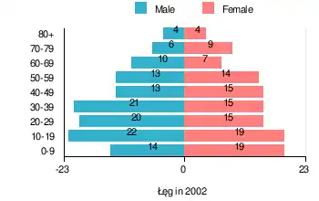 Figure 1. Population pyramid of village in 2002 — by age group and sex[1]