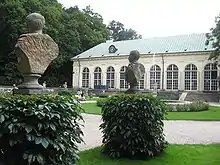 The building was necessary because tsar Alexander II of Russia, who purchased one of the largest in Europe collection of tropical plants from Nieborów, could not transport it to Saint Petersburg, due to climate conditions there.[31] The collection's pride were long-lived orange trees (there were 124 of them in the collection).[31] Unfortunately, during the World War I, they were left without appropriate care and froze.[31] The building consists of an oblong hall, with glass walls.[30] Today it houses a tropical garden[30] and a restaurant in the northern wing.