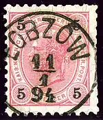 Austria KK 5 kreuzer stamp, cancelled at Łobzów in 1894
