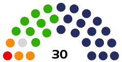The Świętokrzyskie Voivodeship Sejmik (Polish: Sejmik Województwa Świętokrzyskiego) is the regional legislature of the voivodeship of Świętokrzyskie, Poland. It is a unicameral body consists of thirty councillors elected in free elections for a five-year term. The current chairperson of the assembly is Andrzej Pruś of the PiS.[1]