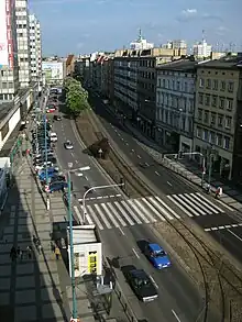 Trams run along most of the length of the street, from Rondo Kaponiera to Aleje Karola Marcinkowskiego, in both directions at the western end, and eastwards only east of Gwarna.
