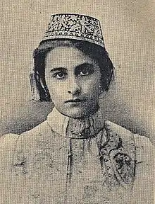 Şefiqa Gaspıralı (Russian: Шефика Исмаиловна Гаспринская, romanized: Shefika Ismailovna Gasprinskaya; 14 October 1886 - 31 August 1975) was a Crimean Tatar feminist leader who was editor-in-chief and publisher of the first women's magazine, a member of the Presidency Council of the Kurultai, and a deputy for two terms in the Crimean People's Republic. She was also a kindergarten teacher.