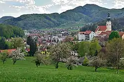 Šentjur (pronounced [ʃɛnˈtjùːɾ] ⓘ or [ʃənˈtjùːɾ]; German: Sankt Georgen[3]) is a town in eastern Slovenia. It is the seat, and largest settlement, of the Municipality of Šentjur. The town lies on the Voglajna River east southeast of Celje. The settlement, and the entire municipality, are included in the Savinja Statistical Region, which is in the Slovenian portion of the historical Duchy of Styria.[4]