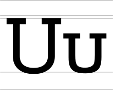 The letter Ʊ (minuscule: ʊ), called horseshoe or sometimes bucket, inverted omega or latin upsilon, is a letter of the International Phonetic Alphabet used to transcribe a near-close near-back rounded vowel. Graphically, the lower case is a turned small-capital Greek letter omega (Ω) in many typefaces (e.g. Arial, Calibri, Candara, Liberation, Lucida, Noto, Times New Roman), and historically it derives from a small-capital Latin U (ᴜ), with the serifs exaggerated to make them more visible.[1] However, Geoffrey Pullum interpreted it as an IPA variant of the Greek letter upsilon (υ) and called it Latin upsilon, the name that would be adopted by Unicode, though in IPA an actual Greek upsilon is also used for the voiced labiodental approximant; Pullum called this letter script V[2] and Unicode calls it V with hook.