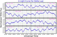 Delta Lupi is a Beta Cephei variable star that undergoes periodic pulsations. It has a single period of variability lasting 0.1655 days, or six cycles per day.[5] This is a proper motion member of the Upper Centaurus–Lupus sub-group in the Scorpius–Centaurus OB association, the nearest such co-moving association of massive stars to the Sun.[7]