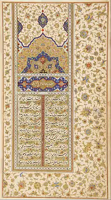 Jamāl-al-Din Moḥammad Sidi (1555–1591)[1] was a Persian poet. He lived from 963 AH-999 AH; c. 1556-1590 CE; known by his pen-name Urfi, or Orfi or Urfi Shirazi (Persian: عرفی شیرازی), was a 16th-century Persian poet.[2]