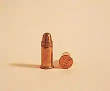 .22 Short is a variety of .22 caliber (5.6 mm) rimfire ammunition. Developed in 1857 for the first Smith & Wesson revolver, the .22 rimfire was the first American metallic cartridge.[1] The original loading was a 29 or 30 gr (0.066 or 0.069 oz; 1.879 or 1.944 g) bullet and 4 gr (0.0091 oz; 0.2592 g) of black powder. The original .22 rimfire cartridge was renamed .22 Short with the introduction of the .22 Long in 1871.[1]