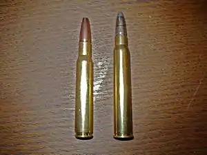 ![]() .30-06 Springfield 11.7 g (180.6 gr) Norma Vulkan (left) and .30 R Blaser 11.7 g (180.6 gr) RWS UNI Classic rifle cartridges | ||||||||||||||||||||||||