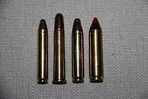 The .360 Buckhammer, also called 360 BHMR (9.1×46mmR), is a SAAMI-standardized[2] straight-walled intermediate rifle cartridge developed by Remington Arms Company.[3] The cartridge was designed for use in American states that have specific regulations for deer hunting with straight-walled centerfire cartridges.