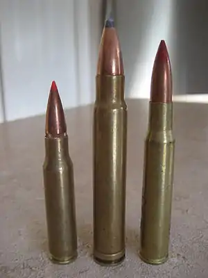 The .375 Weatherby Magnum (9.5×73mmB) is a medium-bore rifle cartridge. The cartridge is blown out, improved and provided with the Weatherby double radius shoulder – given the Weatherby treatment – version of the .375 H&H Magnum.[1][2] Unlike other improved versions of the .375 H&H Magnum like the .375 Ackley Improved, the .375 Weatherby Magnum is not a wildcat and existed as a proprietary cartridge until the CIP published specifications for the cartridge.