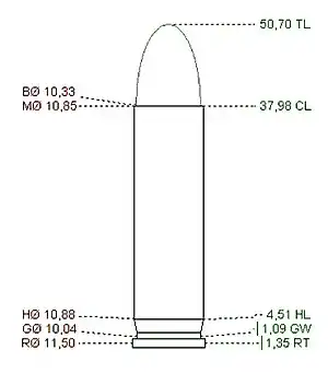 | Neck diameter | .428 in (10.9 mm) | |||||||||||
