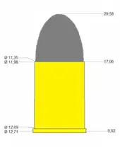 | Bullet diameter | .455 in (11.6 mm) | |||||||||||
