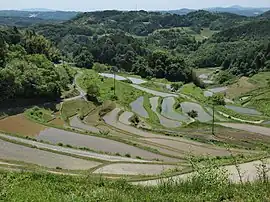 This list of the 100 Terraced Rice Fields of Japan (日本の棚田百選, Nihon no tanada hyakusen) is an initiative by the Ministry of Agriculture, Forestry and Fisheries to promote the maintenance and preservation of the terraces alongside public interest in agriculture and rural areas. In 1999, some 134 terraces were selected by a committee of academics from nominations by each prefecture, in 117 municipalities from Tōhoku to Kyūshū.[1][2][3][4]