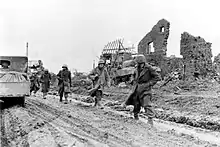 The regiment returned from World War II at the Boston port of entry on 11 July 1945 and then moved to Fort Leonard Wood, Missouri, where it was inactivated on 20 October 1945.[3] In September 1946, the 121st Infantry Regiment was assigned to the 48th Infantry Division, a national guard division headquartered in Jacksonville, Florida. In 1955, this division became the 48th Armored Division and moved its headquarters to Macon, Georgia. As a result of this reorganization, the 121st Infantry Regiment ceased to exist as a tactical organization. Some elements of the 121st Infantry were transferred to the 162nd Tank Battalion in May 1956.[4][5] As the army adopted the Pentomic structure in the late 1950s, infantry regiments were broken up and the component battalions reassigned to brigade headquarters while still retaining the number of their former regiment in their titles. Thus, while the 121st Infantry has not existed as a separate tactical organization since the mid-1950s, some Georgia National Guard battalions, such as 2nd Battalion, 121st Infantry Regiment are still affiliated with the regiment, but assigned to brigades such as the 48th Infantry Brigade for purposes of tactical organization.