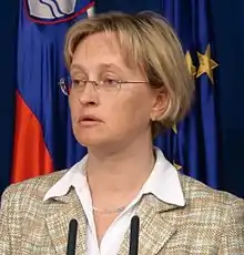 - "Potrjena nova ministrica in rebalans proračuna". MMC RTV Slovenija. 19 November 2014.