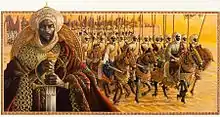 Trade among the Sahara Desert was highly influenced by the prominent Western empires and the local people living along the trade routes.[1] In the 10th-15th centuries the major empires of Ghana, Mali, and Songhay influenced many of the trade practices.[3][1] These powerful empires would extend their hand of power over African trade by directing trade routes through the major cities and taxing the travelling merchants and their goods.[1] Through the power of the empires, many of the trade routes were secured and the merchant profession became a prosperous one.[1] When travelling, traders could travel individually or in groups, or they could attach themselves to an annual caravan.