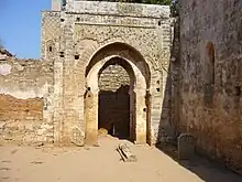 In addition to invasions on the Iberian Peninsula, the Marinids wanted to control the central Maghreb and Ifriqiya. Their first attacks were against the Abdalwadids of Tlemcen, the Marinids immediate neighbours to the east, whom they invade several times.[15] In 1337 Abū al-Ḥasan ʿAlī, one of the Marīnid sultans, tried to restore the Almonad empire. He captured the Tunisia capital of Tilimsān (Tlemcen) but was unable to defeat the Ḥafṣid.[14] But in 1347, Abu-l-Hasan 'Ali ibn 'Uthman also captured Tunis and the Hafsid amir.[15] He later also captured Barqa and Tarablus. During this time the Marinids united all of the Maghrib under one government. This expansion was temporary because the following year, Abu-l-Hasan 'Ali ibn 'Uthman's army was defeated in Kairouan by a coalition of Arab tribes. Eventually, the Near Maghrib and the Middle Maghrib seceded from the Marinid state when weak rulers rose to power causing it to return to its original borders.[13] These military campaigns depleted the resources of the Marinid dynasty and led to a state of anarchy.