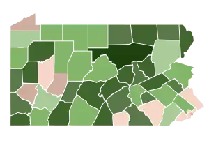 | Schuylkill | 83.33% | 124 | 16.67% | 68 | 408 |