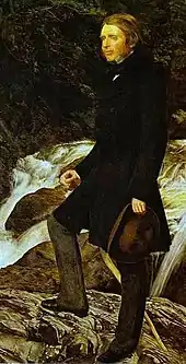- Artist Eugène Delacroix wears a stiff tie over a tall standing collar. His double-breasted waistcoat is cut straight across. His frock coat, waistcoat and trousers are all of different fabrics. France, 1858.