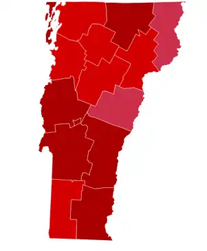 Frémont's victory also started the 104 year long streak of Republican presidential candidate victories within the Green Mountain State, which would last for 27 consecutive presidential elections from 1856 through 1960—as of 2020, still tied with Georgia from 1852 to 1960 for the most of any state.[2] A Democratic presidential candidate would not win Vermont until Lyndon B. Johnson won the state against Barry Goldwater 108 years later in 1964.