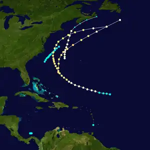 {{cite book}}:|work=ignored (help) - "Atlantic hurricane best track (HURDAT version 2)" (Database). United States National Hurricane Center. April 5, 2023. Retrieved October 22, 2023.