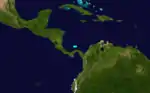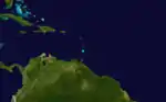 On October 5, a tropical storm caused flooding in Saint Lucia. That day and throughout the next, high winds and heavy rain were observed in Speightstown, Barbados. The storm may also have affected Saint Vincent. No track has been identified for the storm and it has been assigned a single location in the HURDAT database.[3]