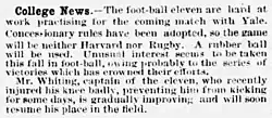 ![]() News about the Harvard v Yale game played under the "concessionary rules". It is considered the first rugby-style game between US-based colleges