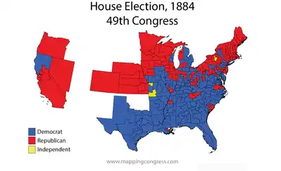 The 1884 United States House of Representatives elections were held for the most part on November 4, 1884, with four states holding theirs early between June and October. They coincided with the election of President Grover Cleveland. Elections were held for 325 seats of the United States House of Representatives, representing 38 states, to serve in the 49th United States Congress. Special elections were also held throughout the year.