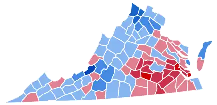 | Petersburg City | 1,612 | 36.83% | 2,765 | 63.17% | 0 | 0.00% | -1,153 | -26.34% | 4,377 |