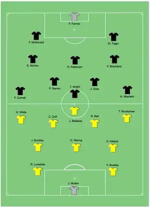 Alma: GK H.Farron, DF E.Morton, F.McDonald, MF P.Fagin, F.Britchford, R.Patterson, FW P.Brennan, Joseph Lucas, Thomas Bright, H.Maxfield, John Gray.