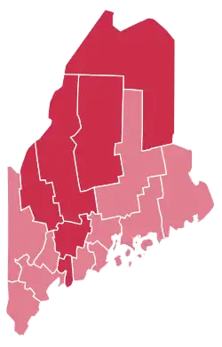 | Aroostook | 3,365 | 60.73% | 1,808 | 32.63% | 360 | 6.50% | 8 | 0.14% | 1,557 | 28.10% | 5,541 | ||