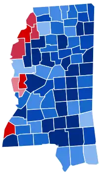 | Coahoma | 612 | 27.78% | 1,591 | 72.22% | 0 | 0.00% | -979 | -44.44% | 2,203 |