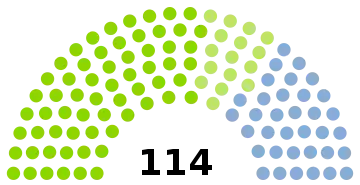 All 114 seats in the Storting 57 seats needed for a majority | |||||||||||||||||||||||||||||||||